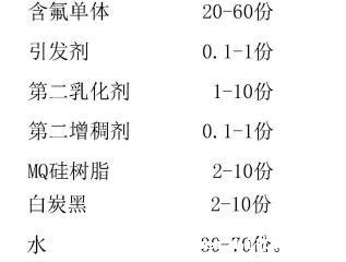 进一步的,所述含氟单体为甲基丙烯酸六氟异丙酯、全氟己基乙基甲基丙烯酸酯、全氟己基乙基丙烯酸酯、全氟丁基乙基甲基丙烯酸酯、全氟丁基乙基丙烯酸酯、甲基丙烯酸-2,2,2-三氟乙酯、甲基丙烯酸十二氟庚酯或甲基丙烯酸六氟丁酯中的至少一种。