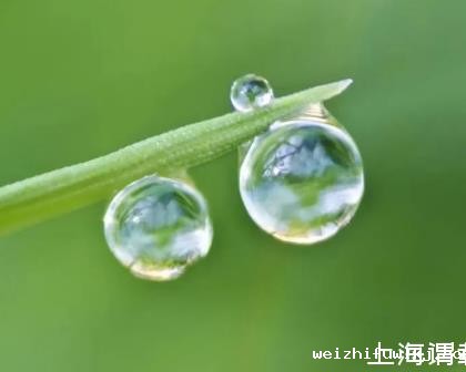 因此,在表面张力的作用下,液滴总是力图保持球形,这就是我们常见的树叶上的水滴接近球形的原因。