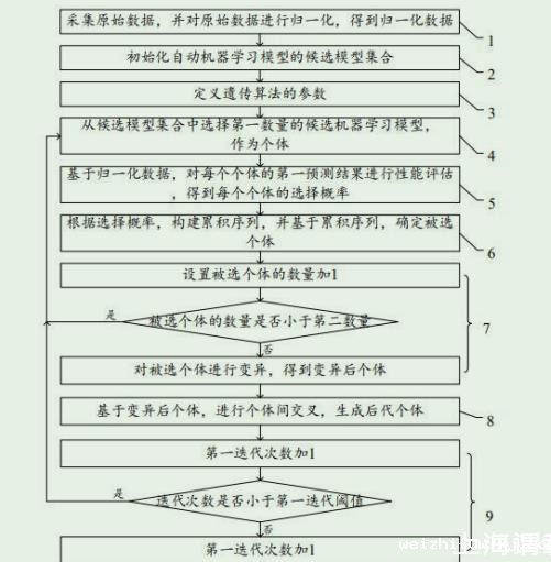 第一迭代次数加1,并判断第一迭代次数是否小于第一迭代阈值,若是,跳转至从所述候选模型集合中选择第一数量的候选机器学习模型步骤;若否,将当前所述后代个体作为预测模型;