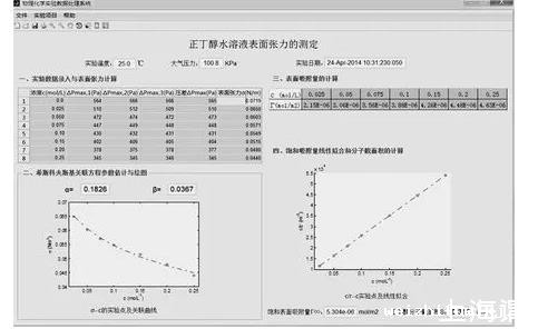 借助MATLAB工程计算平台,通过程序设计完成了“正丁醇水溶液表面张力的测定”应用软件的开发。在完成录入压差实验数据后,不仅可以自动计算和填入溶液的表面张力,还能够实现溶液表面张力与浓度定量关系的希斯科夫斯基经验方程(Szyszkowski′s equation)中待估参数的求解,并用以求导供给吉布斯公式计算溶液的吸附量,进而推算溶液饱和吸附量和正丁醇分子的截面积。软件的操作过程简便、直观、高效,避免了人工数据处理、绘图的烦琐和人为误差,可提高实验结果的准确性和重现性。