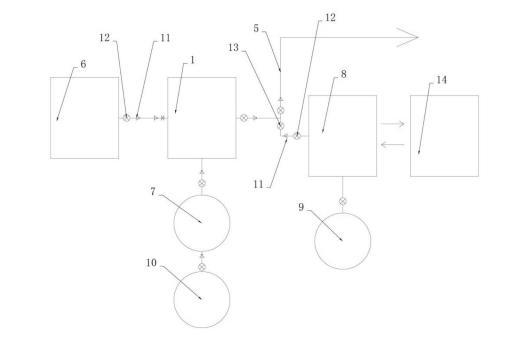 1、微纳米气泡发生器;2、进水口;3、进气口;4、出水口;5、输送管;6、注水泵;7、注气泵;8、加药泵;9、药剂瓶;10、制氮机;11、单向阀;12、手动阀门;13、电子阀门;14、智能配电箱;15、第一旋风分离器;16、套筒;17、进气管;18、储气腔;19、进气孔;20、第二旋风分离器;21、蠕动泵。