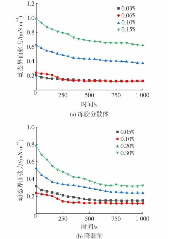 稠油冷降黏剂&采冻胶分散体调驱复配体系对其动态界面张力的影响