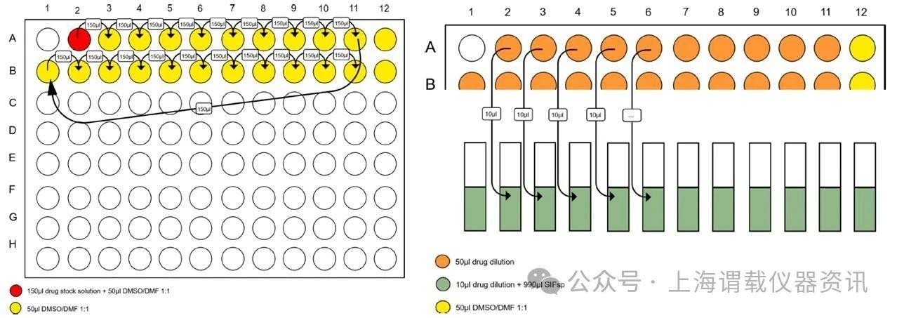 图2、左边的图表示的是采用移液枪将样品(难溶性的两亲化合物)转移到kirbon公司的96孔板上测试其表面张力。右图表示的是采用了改进的制备难溶性的两亲性化合物的表面张力的方法。
