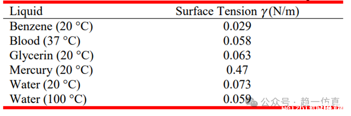 表面张力系数只与液体本身状态有关,常见液体的表面张力(系数)如下: