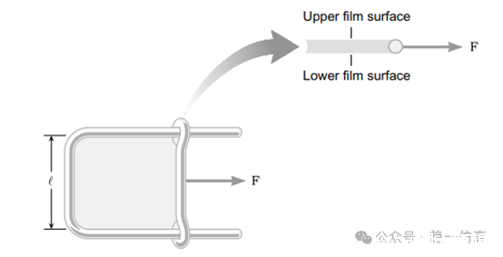 液体的表面张力促使液面收缩,对滑块有一个向左的拉力,当我们用一个向右的力与之平衡时,可以获得力的大小,然后与滑块的长度一起可以算出表面张力系数。