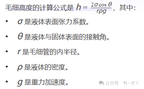 解答上述问题,可以从毛细高度的计算公式中找到答案。