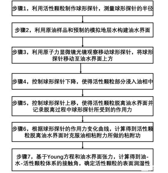 步骤7,利用界面18luck国际测量油相与水相之间的界面张力,基于Young方程,结合球形探针的半径以及球形探针的下降高度,计算得到油-水-活性颗粒体系的接触角,确定活性颗粒的表面润湿性。