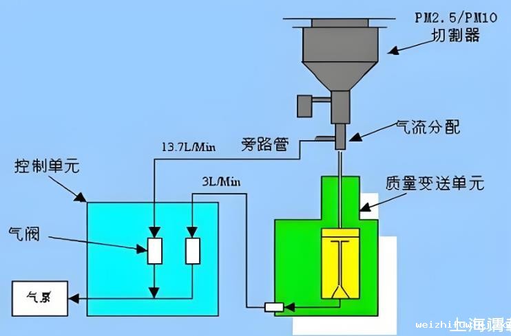 测量原理是基于锥形元件振荡微量天平原理,核心部件为锥形元件振荡器。锥形元件振荡器在其自然频率下振荡,振荡频率由振荡器件的物理特性、参加振荡的滤膜质量和沉积在滤膜上的颗粒物质量决定。仪器通过采样泵和流量计,使环境空气以一恒定的流量通过采样滤膜,颗粒物则沉积在滤膜上。测量出一定间隔时间前、后的2个振荡频率,就能计算出在这一段时间里收集在滤膜上颗粒物的质量,再除以流过滤膜的空气的总体积,得到这段时间内空气中颗粒物的平均浓度。