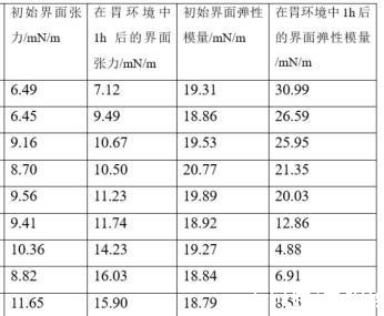 界面张力和界面模量的测定:采用界面18luck国际测量仪测量油水界面的界面张力和界面模量。使用蠕动泵对水相液体进行更换,依次为不同样品的水溶液、口腔消化液、胃消化液、小肠消化液。