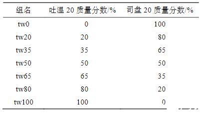 表1各组明胶成膜溶液所添加表面活性剂比例