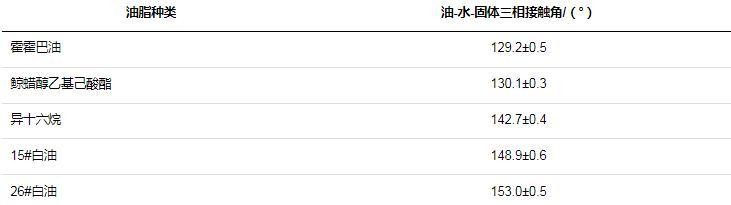 表1不同油脂的油-水-固体三相接触角