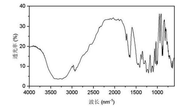 使用ATR附件,扫描背景去除杂峰后将取少量多羟基烷基季铵盐放在测试位置开始进行红外光谱扫描。在3300nm1附近的宽吸收峰可归属为羟基吸收峰,亚甲基的吸收峰分别位于2900nm1和1200~1400nm1附近,1100nm1处为CF的吸收峰区。