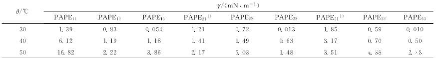 表2不同温度下9种PAPEmn溶液-孤东二元驱原油体系的油-水界面张力的稳态值(γ)