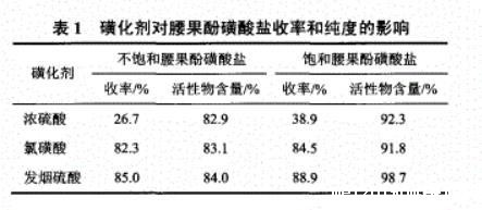 表1磺化剂对腰果酚磺酸盐收率和纯度的影响