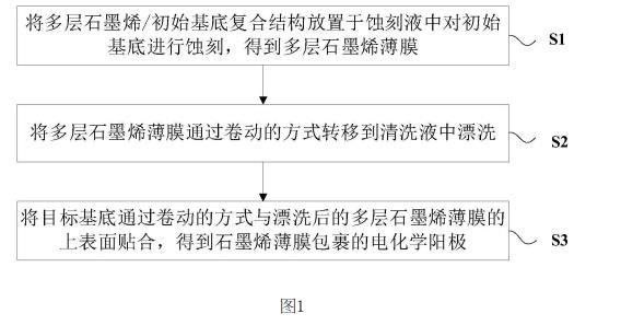 本实施例提供了一种基于石墨烯薄膜包裹的电化学阳极大规模制备方法,如图1所示,包括以下步骤: