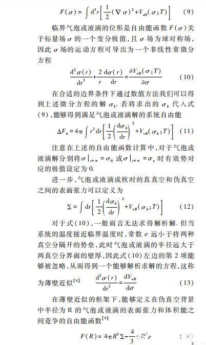 在上述对气泡动力学研究的理论分析中,标量场σ的真空平均值可以看做序参数,并且系统的自由能函数能够被定义为