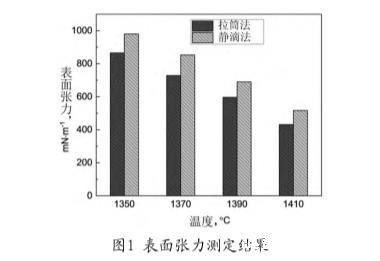 拉筒法和静滴法测定连铸结晶器保护渣表面张力(一)