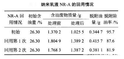 回用的纳米乳液脱附除油效果