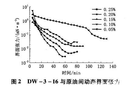 图2 DW-3-16与原油间动态界面张力
