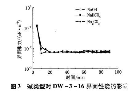 图3碱类型对DW-3-16界面性能的影响