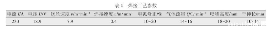 采用CMT一元化焊接工艺,通过正交试验确定主要影响因素,焊接规范参数如表1所示。