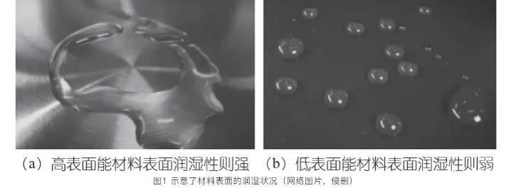 图1示意了材料表面的润湿状况(网络,侵删)