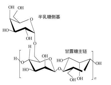 本实验使用的主要压裂液稠化剂是羟丙基胍胶,主要原料天然植物瓜尔胶豆胚乳中提取的一种天然高分子,由甘露糖和半乳糖两种单糖组成的多糖,如图1。分子主链由甘露糖单元通过β-1,4苷键连接,侧基的半乳糖通过α-1,6苷键连接到分子主链上。