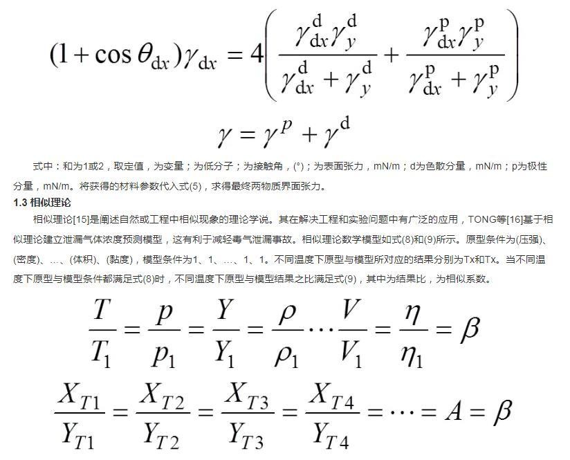 本文中原型与模型分别是指接触角法与调和平均法,实验材料及仪器相同,原型条件是测(测试温度)、加(加热时间)、静(静置时间)、(液滴体积)、(标准大气压);模型条件是测1(测试温度)、加1(加热时间)、静1(静置时间)、1(液滴体积)、1(标准大气压)。当相似系数为1时,采用调和平均法修正接触角法。