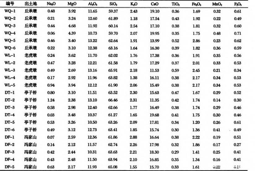 表1无锡鸿山贵族墓、德清窑址出土原始青瓷样品釉的主、次量元素组成(wt%)