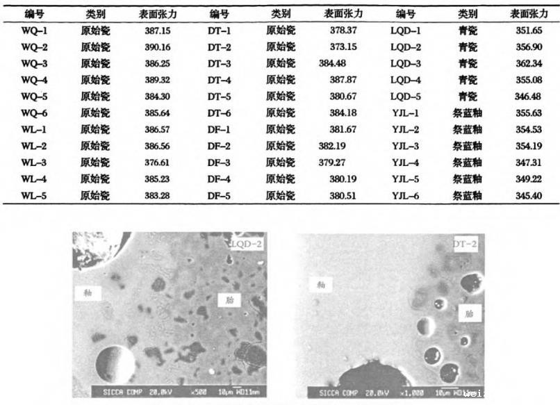 表4原始瓷和成熟瓷器釉在1200℃时的表面张力值(mN/m)