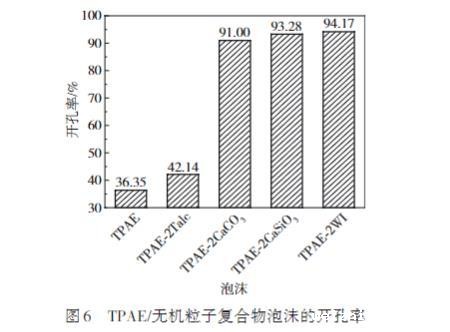 图6 TPAE/无机粒子复合物泡沫的开孔率