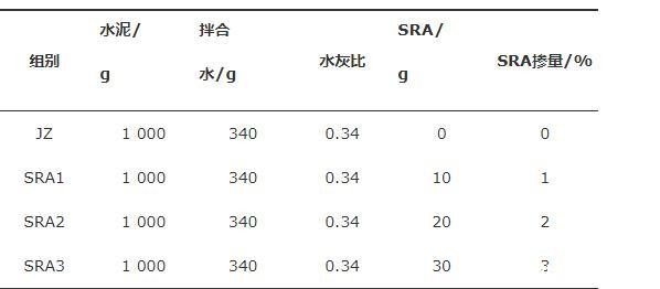 选用江苏苏博特新材料股份有限公司研发的SRAⅠ聚醚型减缩剂(SRA),基本物化特性如表2所示。
