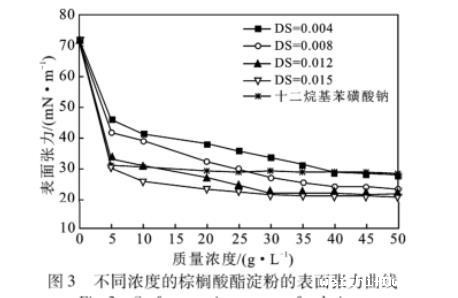 图3不同浓度的棕榈酸酯淀粉的表面张力曲线