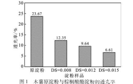 图1木薯原淀粉与棕榈酸酯淀粉的透光率