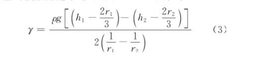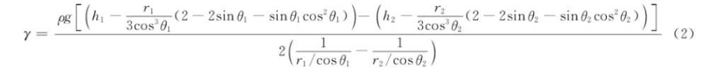 将Δh代入表面张力计算公式,得到式(2):