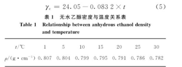 表1无水乙醇密度与温度关系表