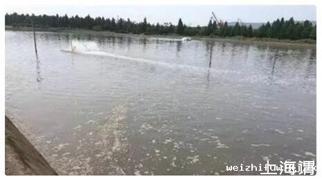 这些有机物过多或死藻过多的池塘,一般增氧机打起的水花颜色浓,水花线会很长。但是还有一种水花线特别短的现象,多是由于有机质过多引起严重污染,水体黏稠或是活菌过少,不能及时分解有机质造成的,这种现象在海水高位池当中经常出现,大家要予以重视。