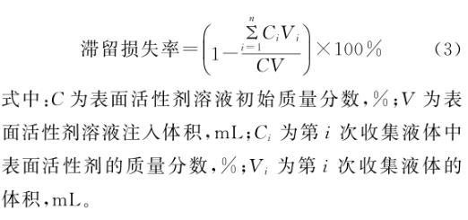 式中:C为表面活性剂溶液初始质量分数,%;V为表面活性剂溶液注入体积,mL;Ci为第i次收集液体中表面活性剂的质量分数,%;Vi为第i次收集液体的体积,mL。