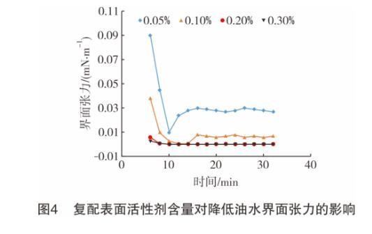 2.4复配表面活性剂含量对降低油水界面张力的影响