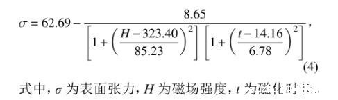 式中,z表示溶液表面张力,z0表示零点偏移量,x表示磁场强度,y表示磁化时长,A1~A5分别为x~x5的系数,B1~B5分别为y~y5的系数。