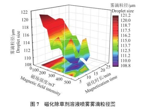 磁场强度和磁化时长对除草剂溶液表面张力、喷雾雾滴粒径的影响(三)