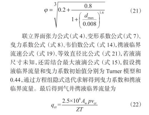 图7考虑液滴变形的携液临界流速