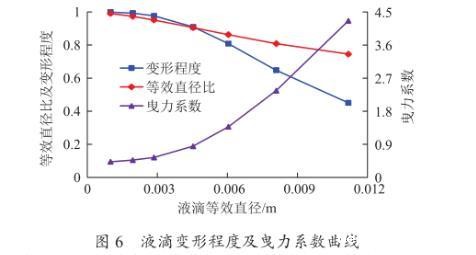 图6液滴变形程度及曳力系数曲线