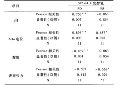 表1 pH值、Zeta电位、黏度、表面张力与蛋液起泡性质之间的相关性分析