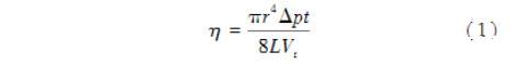 式中:r为毛细管半径;t为液体流经毛细管的时间;L为毛细管长度;Vt为t时间内液体所流过的体积;Δp为液体上下液面的压力差。毛细管黏度计使用方便,但它受剪切速率限制(一次只能测量对应一个剪切速率的黏度),并不适合肺液体或者黏液等非牛顿液体黏度的测量。