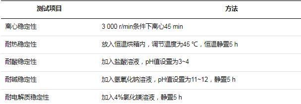 氨基改性硅油柔软剂根据纺织物处理需要的不同,接触到酸碱度、温度等条件都不同,而无论是什么样的条件,都要求氨基改性硅油柔软剂具有极强的稳定性,不能出现水油分离现象。测试项目如表3所示。