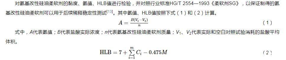 1.2.2氨基改性硅油柔软剂的黏度、氨值、HLB值测定