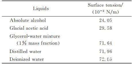 表1实验液体的表面张力