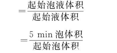 泡沫性能:用振荡法测定,即室温(25℃)下,在100 mL具塞量筒中加入30 mL质量分数为0.5%或0.1%的待测溶液,用力振荡10次,记录泡沫和液体的总体积。静置5 min,记录泡沫体积。发泡力和稳泡性计算公式: