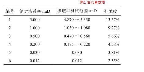 具体实验方案如下:①渗透率,分别选取5.0 mD、1.0 mD、0.5 mD、0.2 mD、0.03 mD和0.012 mD的岩心进行实验;②水封程度,根据式(1)设计水封段塞长度为0.1~4.0 cm;③裂缝内压力,通过改变出口端压力来模拟裂缝中压力,岩心出口端回压分别设置为5.0 MPa、3.0 MPa、1.0 MPa和0.1 MPa,围压设定为15 MPa;④润湿性,首先开展岩石表面润湿性测试实验,弄清不同润湿反转剂浓度时的润湿特性,然后利用润湿反转剂浓度分别为0.001 5%、0.003 0%、0.010 0%的溶液改变岩心润湿性。